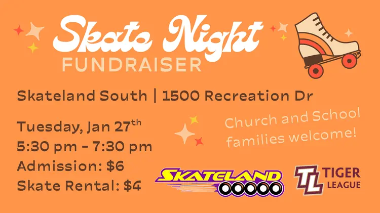 Lace up and roll on over! Don’t forget our Skate Night Fundraiser TOMORROW! Flyers were sent home and info is below.