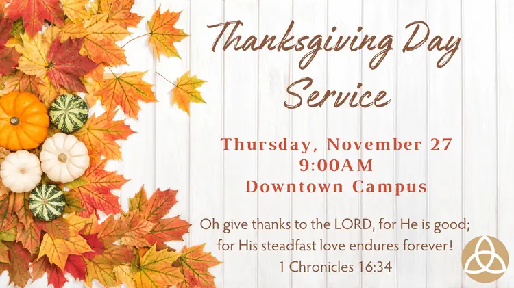 Thanksgiving Day worship is Thursday, November 27 at 9:00am at our Downtown Campus.